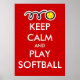 Fique calmo e jogue poster de softball. Fique calma e carregar na paródia design.