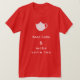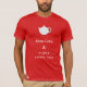 Fique calmo e faça um pouco de chá - design gráfico impresso nesta camisa masculina. Design de Alma Wad. Vem com um bule de chá e um traço de humor. A imagem gráfica branca contrapõe-se ao vermelho. Você pode personalizar o texto agora.