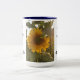 Esta grande caneca de café tem uma foto de girassol no meio e Be ainda e saiba que eu sou Deus nos dois lados da xícara.