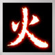 Fogo Poster Kanji. Este é o símbolo japonês Kanji para o fogo. O símbolo foi colocado em chamas para parecer semelhante a uma chama de vela tremenda.
