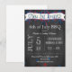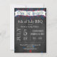 Este convite de festas de 4 de julho convida seus convidados para seu churrasco, biscoito ou diversão piquenique este ano em estilo. Feito em uma moda, vintage, estilo 'chalkboard' com uma bela tipografia, você personaliza facilmente este convite com suas informações usando o modelo. Os bombeiros vermelhos, brancos e azuis, e as sutis estrelas de fundo, dão a este quarto de julho um pequeno soco extra de cor e de atração.