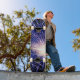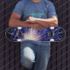 skate com fogos de artifício azuis.