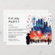 Ilustração de pessoas na cidade celebrando o dia da independência com fogos de artifício