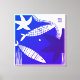 Canvas wall art of fish and starfish in colors of blue and white, in an abstract design.