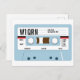 Este é um design de cartão postal de fita cassete para um cartão QSL de rádio amador. Possui campos de texto personalizáveis para o indicativo de chamada e localização. No rótulo da cassete, há áreas para você preencher as informações do QSO, como hora, data, modo, etc.