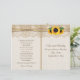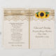 Lace branco elegante, fita, girassóis e programa de casamentos dobrados de burlap, com rendas brancas na burlap natural bege ou hissiano com duas fitas de cetim cruzadas e girassóis. Texto em castanho. Observe que rendas, burlap e girassóis são todos "impressos" e não tecidos reais ou flores. Esta elegante, sofisticada e romântica design com uma essência rústica faz parte de um conjunto de casamentos e é perfeita para um chic country ou um casamento outono/outono ocidental com uma paleta de cores neutras. Você terá que dobrar no centro para ter um programa dobrado. Escolha apenas o tipo de papel de valor à medida que ele se dobra bem.