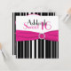 Adicione brilho e brilho à sua festa de aniversário Sweet 16 com este doce 16.º convite com listras brancas e pretas, com um rosado fuchsia, IMPRESSO EM Fita e broche de joias de cristal. Todas as opções de texto e papel são personalizáveis. Há um convite alternativo mostrado abaixo que tem uma resposta diferente. Se desejar que algo seja alterado neste convite, ou se houver itens correspondentes que você gostaria de fazer neste design, envie um email para niteowlstudio@gmail.com com sua solicitação.