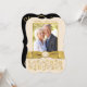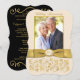 Este convite de foto de aniversário de casamento de 50 anos, com flores em marfim, preto e dourado, tem uma fita dourada IMPRESSA e uma medalha de marfim e dourado com aparência de gravura FALSA IMPRESSA. Possui uma área de modelo para você carregar sua própria foto digital. Você pode remover o texto estilizado em cursiva "Aniversário de Casamento" ou "50º". Todo o texto é personalizável, assim como as opções de papel. ALÉM DISSO, se você alterar as fontes ou tamanhos de fonte, seu texto pode não caber mais corretamente. A Zazzle não editará nada para erros de digitação, alinhamento ou qualquer outra coisa, e eu não verei seu convite. Tudo será impresso como aparece no seu monitor. Se precisar de ajuda com o convite, por favor entre em contato comigo ANTES de fazer o pedido. Este convite foi projetado para se ajustar ao cartão de tamanho 5x7 com forma CURVA. Se você mudar para outro tamanho/forma, o design não se ajustará mais corretamente, então, se você quiser um tamanho diferente