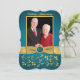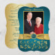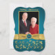 Este convite de foto para aniversário de casamento de sessenta e cinco anos, em elegante tom floral verde azulado e dourado com rolos, tem uma fita e laço dourados IMPRESSOS e uma medalha azulada e dourada com aparência de FAUX GRAVADA impressa. Possui uma área de modelo para você carregar sua própria foto digital. Você pode remover o texto estilizado em cursiva "Aniversário de Casamento" ou "60º". Todo o texto é personalizável, assim como as opções de papel. ****POR FAVOR, NOTE que o papel dourado é um tom muito escuro de latão dourado e irá alterar as cores do design (tornando a foto dourada, etc.), então NÃO sugiro usar esse papel. O papel de feltro também irá alterar ligeiramente a cor da sua foto. Este convite foi projetado para se ajustar ao cartão de tamanho 5x7 com forma CURVA. Se você mudar para outro tamanho/forma, o design não se ajustará corretamente, então, se você quiser um tamanho diferente, por favor entre em contato comigo para que eu possa redesenhá-lo para você. ALÉM DISSO, se você mudar as fontes ou tamanhos de fonte, seu texto pode não se ajustar corretamente mais. O Zazzle não edita nada para erros de digitação, alinhamento ou qualquer outra coisa, e eu não verei seu convite. Tudo será impresso como aparece na sua tela. Se você precisar de