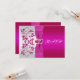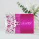 Este cartão de resposta com padrão floral rosa quente e cinza prateado tem uma fita com "PRINTED ON" e um par de jóias de diamante "PRINTED" e corações unidos com brilho FAUX que combina com o convite de casamento mostrado abaixo. É mostrado aqui em papel básico, mas brilharia ainda mais em papel metálico gelo, que tem um brilho opalescente sutil. O papel feltro é um papel texturizado grosso e em relevo que também daria resultados luxuosos. O linho esfriará o design e é um papel leve com linhas finas atravessando-o que você pode não gostar. ALÉM DISSO, se você mudar as fontes ou tamanhos de fonte, seu texto pode não caber mais corretamente. A Zazzle não editará nada para erros de digitação, alinhamento ou qualquer outra coisa, e eu não verei seu convite. Tudo será impresso como aparece no seu monitor. Se você precisar de ajuda com o convite, por favor entre em contato comigo ANTES de fazer o pedido. Este convite é projetado para caber no cartão de tamanho 3,5x5. Se você mudar para outro tamanho, o design não caberá mais corretamente, então se você quiser um tamanho diferente, por favor entre em contato comigo para que eu possa redesenh