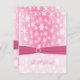 Este cartão de rsvp de flocos de neve rosa e branco tem uma FITA IMPRESSA rosa quente com um broche de jóias de diamante IMPRESSO que combina com o convite de casamento mostrado abaixo. O envelope correspondente também é mostrado.