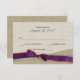 A aparência de burlap com uma fita púrpura e laranja bonito é impressa neste cartão de resposta elegante de país para corresponder aos nossos convites. Todas as partes deste convite são impressas. Não há nenhuma fita ou arromba real conectada.