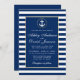 Convite Dourado para Casamento Náutico Blue Stripes - Blue Back