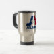 Caneca de viagem com a bandeira de Arlington, Texas. Uma bandeira branca com uma letra A azul e vermelha e uma estrela prateada no centro