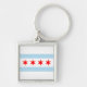 Chaveiro quadrado com bandeira da cidade de Chicago (maior cidade de Illinois), bandeira branca e azul clara listrada com quatro estrelas vermelhas