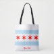 Saco de Tote personalizável com bandeira da cidade de Chicago (maior cidade de Illinois), bandeira branca e azul clara listrada com quatro estrelas vermelhas
