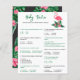 O design de convite para chá de fraldas apresenta flamingo cor-de-rosa com frondes verdes de palma e flores de hibisco tropicais. "Aloha Baby". Um padrão floral tropical com cor preta de fundo se veste na parte de trás do cartão. CHAVE DE RESPOSTA: 1.d 2.d. 3.a 4.c 5.c. 6.a. 7.b 8.c. 9.c. 10.b