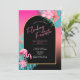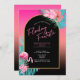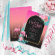 Celebrar com uma festa de solteira "Fantástica de Bloqueio"! Os flamingos cor-de-rosa, as palmeiras tropicais e os florais de fundo gradiente, de cor-de-rosa quente a azul turquesa, são acentuados por formas geométricas arqueadas em preto sólido. Este convite colorido usa um idioma "colorido" como uma forma única de convidar convidados para a sua solteira de destino. Procure ID930 para ver todos os produtos de coordenação nesta coleção.