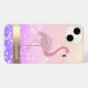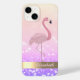 Adorável flamingo rosa sobre fundo de bolso brilhante com seu nome.