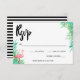 O encantador RSVP com um flamingo rosa e folhas verdes de palma. A parte traseira apresenta faixas finas, em preto e branco.