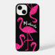 Personalize a capas de iphone feminina de moda cintilante com seu nome. Lindas cinzas brilhantes, brilhantes e brilhantes, brilham o verão exótico padrão de pássaros flamingos em preto. Foto de brilho cor-de-rosa!