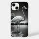 Majestoso flamingo alto em uma piscina com fundo tropical e de verão. A composição lúdica cria um senso de alegria e relaxamento, evocando memórias de dias quentes de verão. O belo e delicado flamingo adiciona um toque de elegância e graça à peça.