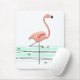Médio do século inspirado no design com um toque retrorreflector com um flamingo rosa em pé na água aqua contra fundo branco. Um design personalizável para você personalizar com seu próprio texto, imagens e ideias. Uma imagem de arte digital original criada por Jess Perry no QuirkyChic Retro.