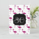 Personalize o convite de aniversário com o seu nome e nome iniciais. Lindas cinzas brilhantes e brilhantes brilham no verão, exóticas aves flamingas. Foto de faíscas cor-de-rosa não é uma falha real!