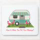 Um mousepad que caracteriza uma ilustração de uma casa retro do reboque com listra de turquesa e toldo e três flamingos plásticos cor-de-rosa na jarda. O texto customizável diz que "Home é onde você pôr seus flamingos!"