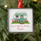 Um ornamento que caracteriza uma ilustração de uma casa retro do reboque com listra de turquesa e toldo e três flamingos plásticos cor-de-rosa na jarda. O texto customizável diz que "Home é onde você pôr seus flamingos!"
