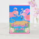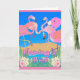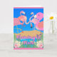 Flamingle Time, cartão de saudação de convite em papel com flamingos em volta de um buraco de água com flores tropicais e um céu azul brilhante. Personalize o texto no cobrir e dentro a placa com as informações de evento do seu participante. Imagem e direitos de autor © Shoaff Ballanger Studios, 2023.