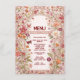Celebrate with this elegant vintage floral menu featuring a romantic botanical garden design framed by a delicate ornamental arch. Soft blush, peach, and pink florals with subtle greenery and butterfly accents create a timeless, feminine look perfect for classic, garden, or spring bridal showers.