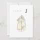 Cartões de número de casamento em chic com pintura a cores de uma mesa Flatiron Hotel Flatiron, em Nova Iorque. O emparelhamento da aquarela pareada com a tipografia quic faz uma combinação maravilhosamente divertida.