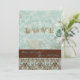 COLOR PALETTE: azul-aqua, latte, bronzeado, castanho-chocolate. DESIGN COLLECTION: Esta coleção de arte moderna, elegante e sofisticada Fleur di Lys foi pintada à mão por Audrey Jeanne Roberts. A design central é uma pulseira marrom de chocolate que é colocada sobre cores damasco velhas e vintage. Alguns dos designs deste pacote de produtos de casamento têm borboletas, vintage obtendo espirais dos ornamentos da impressora, padrões de flores feitos pela Audrey e uma borboleta.
