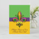 "Fleur de lis Mardi Gras mask", "Fat Terça-Feira Gorda", nas cores de Mardi Gras, roxo, verde e ouro, em papel timbrado, cartas, convites e papéis de carta personalizados que você pode personalizar com seu próprio texto para presentes divertidos de Mardi Gras, convites de festas para o Krewe ou como lembrança de sua viagem a Nova Orleans.