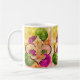 Uma linda e colorida caneca de café com uma design de pulgas de lis por toda a parte.