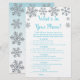 Estas elegantes "What's In Your Phone Cards" são uma forma excelente de se divertir com o seu Chá de fraldas e é garantido ser um grande sucesso! Simplesmente passá-los durante o Chá de fraldas, onde os convidados se divertirão a passar pelos seus telefones celulares e a verificar os itens que têm na lista. A pessoa com mais pontos ganha! Este design tem belos falso falso falso falso floco de neve em cascata com sotaques azuis, perfeito para um chá de fraldas de inverno para um menino.