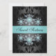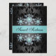 Este elegante e personalizável convite para 16 de aniversário apresenta flocos de neve de geada azul em um fundo negro e damasco preto. Personalize-o adicionando seus detalhes na cor e na fonte de sua escolha!