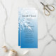 Dê aos seus convidados a ordem de sua cerimônia de casamento em suas núpcias de dezembro, janeiro ou fevereiro com os festivos flocos de neve brancos no Programa Casamento no inverno Azul. O elegante programa temático da Maravilha de inverno, que é personalizado, apresenta um intrincado design de floco de neve branco sobre um fundo de gradiente azul.