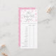 Os chás de fraldas podem adivinhar quais são as características que a mãe e o pai desejam para o bebê com este cartão de jogo bonito com um tema cor-de-rosa floco de neve de inverno. Veja aqui a coleção de chás de fraldas de tema de inverno de cheio: