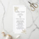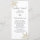 Dê aos seus convidados a ordem de sua cerimônia de casamento de dezembro, janeiro ou fevereiro com o elegante Programa de Casamento no inverno de Flocos de Neve Dourados. Este programa cronológico nupcial do inverno Dourado Snowflake, clássico, apresenta incríveis flocos de neve de ouro nos cantos e um fundo branco.
