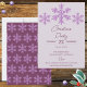 Crie seus próprios convites de festas de Natal do designer com este design falso falso falso floco de neve brilhante em roxo. Esta tendência de cor de Natal é roxa, e estes convites de férias roxos, lavandas e leves, irão estabelecer o clima, quer a decoração de Natal seja roxa ou uma bela mistura de roxo e ouro com pingos. O topo deste design de convite personalizado começa com um trio de falso falso falso flocos de neve roxos arregaçando sobre a Festa de Natal em uma fonte festiva roxa de ameixa. Estes convites de Natal personalizados são totalmente personalizáveis para que você possa editar a Festa de Natal para Festa de Férias de Férias se quiser - ou mudá-la para Véspera de ano novo ou Aniversário para aquelas celebrações de inverno feminino. Cada modelo de texto, em uma mistura de fontes roxas escuras, é fácil de mudar para que você possa adicionar seus detalhes de festas de Natal e criar os convites personalizados de Natal perfeitos em flocos de neve com brilho suave e roxo.