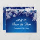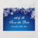 Flocos de neve brancos a azul Salve a data Cartão