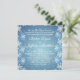 O teste padrão azul branco elegante dos flocos de neve ajustou-se contra um fundo nevado azul do Natal. Uma escolha bonita para o casamento no inverno. Fácil personalizar com sua própria informação e mudar a pia batismal, a cor ou o tamanho da pia batismal.