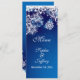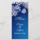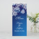 Flocos de neve brancos em um Menu de Casamento de Natal de fundo azul.