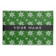 Um padrão bonito, divertido e adorável com flocos de neve brancos em fundo verde. Presente moderno e moderno, perfeito para o amante da neve em sua vida. Personalize adicionando o seu nome, apelido, monograma ou iniciais.
