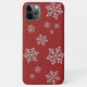 Os flocos de neve de cristal cintilante ilustram esta capas de iphone vermelha de morango, fazer-a um acessório ou presente perfeito nesta temporada de festas.