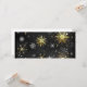 Fundo de Natal preto com flocos de neve de joias douradas e pretas. Flocos de neve ouro. Natal.