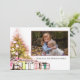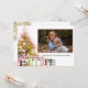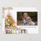Flocos de neve de ouro, pinheiro com presentes e sua foto.