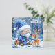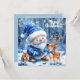 Flocos de neve e gentileza Cartões de Natal Personalizados Em uma floresta serena pobada com neve, um Papai noel alegre em floco de neve azul compartilha um momento gentil com uma rena enfeitada em um cachecol e chifres festivos. Luzes brilhantes brilham pelas árvores, e presentes coloridos se enfeitam na neve, adicionando um toque de magia à cena pacífica. Esta ilustração encantadora captura o espírito da bondade, da maravilha e do encantamento do inverno. 📜 texto inverso: "Mesmo no silêncio, a alegria encontra uma maneira de brilhar." Desejamos-lhe um Feliz Natal (Seu Nome)